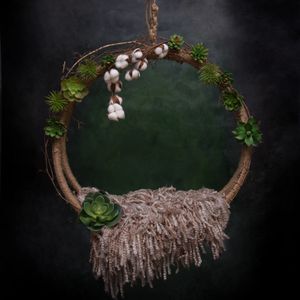 Nos capteurs de rêve sont disponibles avec plusieurs choix de fonds, de fleurs, de plantes, et d'accessoires. Celui-ci est recouvert de mousse, lui donnant un look plus naturel.